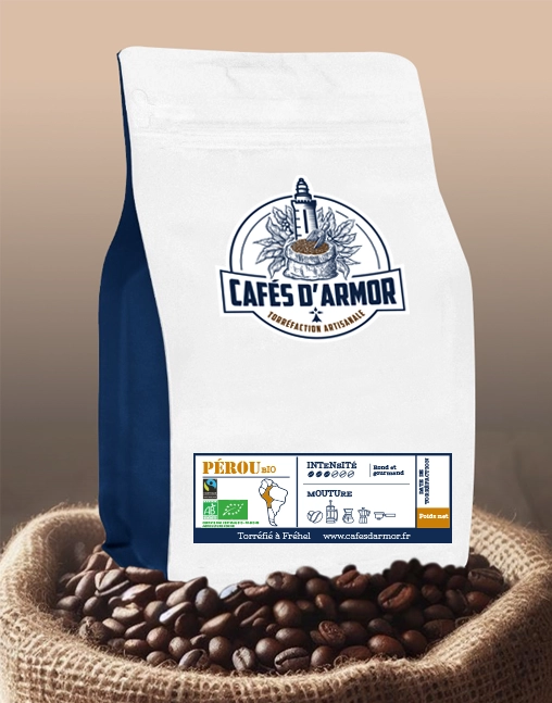 Issu de l’agriculture biologique et du commerce équitable, ce café est doux et long en bouche. Il offre des notes gourmandes et légèrement chocolatées. Disponible en grains et moulu.